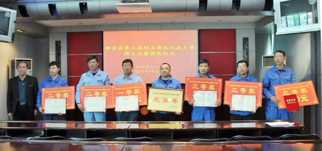 3月28日至29日,由新安縣總工會(huì )主辦、萬(wàn)基控股集團承辦的新安縣第三屆職工技術(shù)比武大賽焊工決賽在集團公司成功舉辦。共有來(lái)自全縣10個(gè)企業(yè)的40名選手參加了決賽。最終,集團公司高壓焊工禹清江榮獲第一名,集團公司榮獲優(yōu)勝獎。