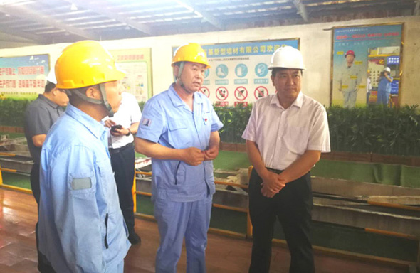 6月22日上午,新安縣縣長(cháng)郅書(shū)安到萬(wàn)基控股集團墻材公司調研。集團公司總經(jīng)理郭峰陪同。